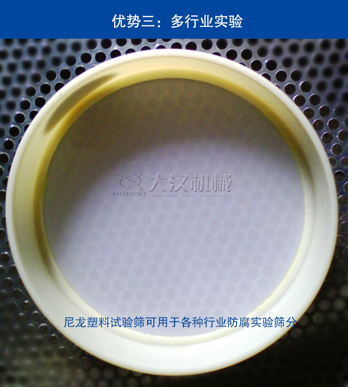 大漢機械生產(chǎn)的尼龍塑料試驗篩全部采用PVC材質,不含金屬成分,優(yōu)質的塑料框加上國家標準的防腐蝕尼龍網(wǎng),為您隔斷一切產(chǎn)生腐蝕的可能性。在需要防腐的實驗篩分工作中您都可以選擇尼龍塑料試驗篩。