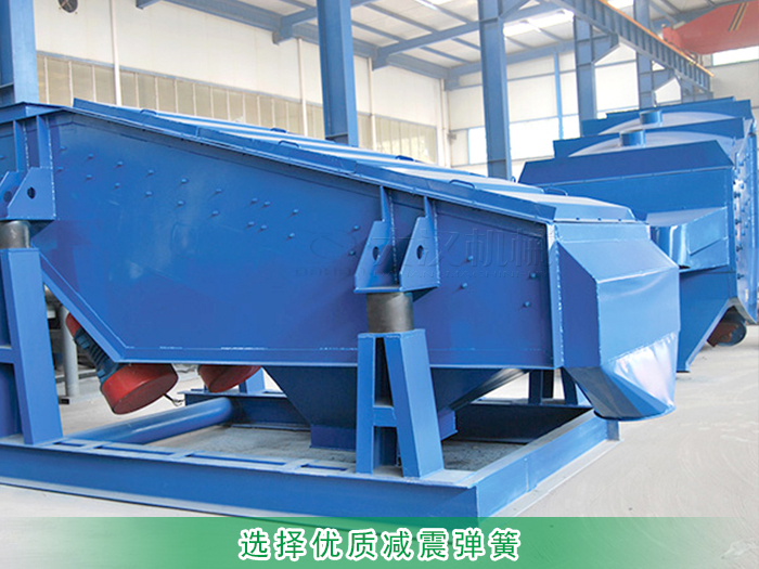砂巖礦用振動(dòng)篩因體型較大所以對(duì)減震彈簧的質(zhì)量要求非常嚴(yán)格,劣質(zhì)彈簧會(huì)在使用一段時(shí)間后,發(fā)生彈簧崩裂、彈性不足等問(wèn)題來(lái)影響篩分效率,甚至?xí)斐稍诤Y分過(guò)程中箱體振裂。所以需要選用優(yōu)質(zhì)減震彈簧,它減震效果和承載力都很好,可有效延長(zhǎng)設(shè)備使用的壽命。