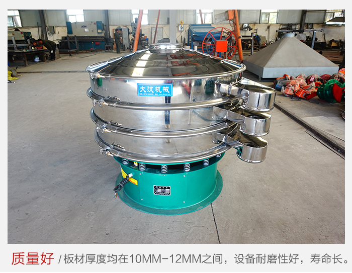 大漢廠家生產(chǎn)的雙層旋振篩采用優(yōu)質(zhì)碳鋼或不銹鋼材質(zhì),板材厚度均在10mm-12mm之間,設(shè)備耐磨性好,使用過程中不會因設(shè)備質(zhì)量問題而造成設(shè)備停機問題,可以在很大程度上降低設(shè)備的維護費用。