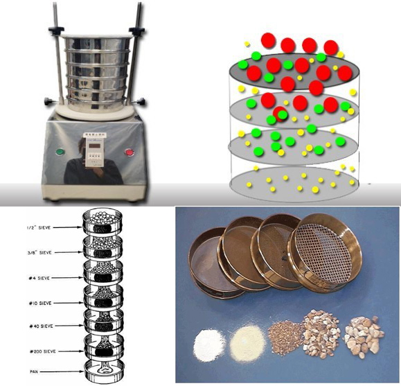 電磁試驗篩由底座、電磁發(fā)生器、篩盤及標準篩組成。采用電磁作為驅動力,使產(chǎn)品均一分布于整個篩網(wǎng),并做三維振蕩(具有上下振動、前后往復運動、左右擺動三種振動方式),這種特殊的振蕩方式有效地防止近篩顆粒堵塞篩孔,使得篩下顆粒得以有效通過,根據(jù)粒度分級的需要用戶可以選用不同目數(shù)的標準篩,使小于篩網(wǎng)??的物料顆粒篩入下層篩框內,以達到分離、分級、確定粒徑的目的。