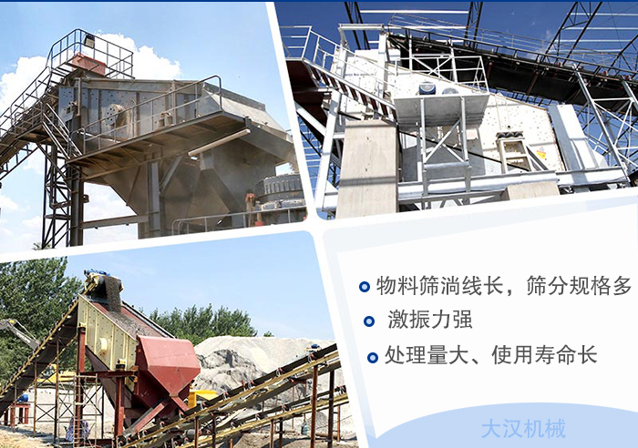 優(yōu)勢:物料篩淌線長,篩分規(guī)格多;采用偏心塊作為激振力,激振力強(qiáng);篩子橫梁與篩箱采用高強(qiáng)度螺栓聯(lián)接,結(jié)構(gòu)簡單,維修方便快捷;采用小振幅、高頻率、大傾角結(jié)構(gòu),篩分效率高、處理量大、使用壽命長、電耗低、噪音小。