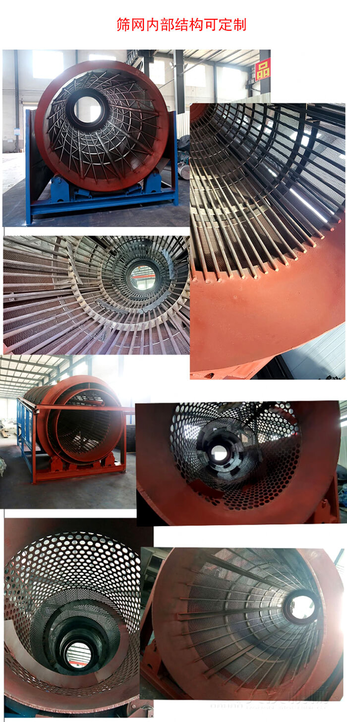 設備可設有梳型清篩機構,在篩分過程中,不管進入篩分筒的物料多臟、多雜都可以篩分,從而提高了設備的篩分效率。