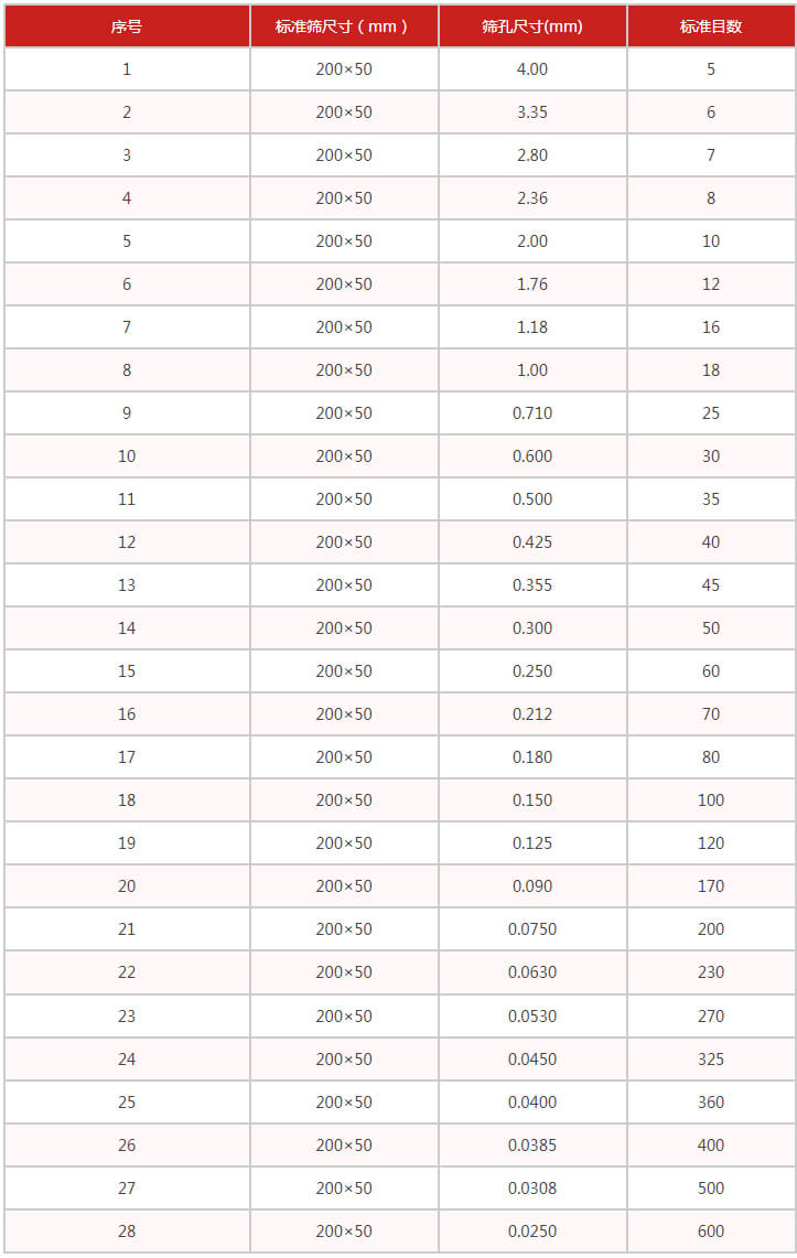 200x50標(biāo)準(zhǔn)篩尺寸mm