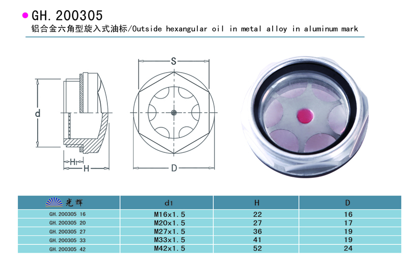鋁合金六角形旋入式油標(biāo)