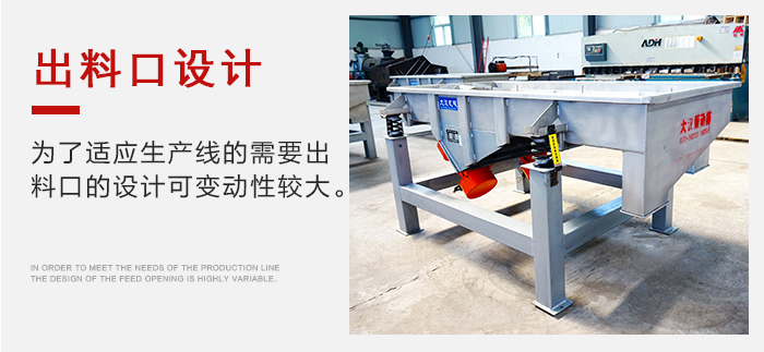 (2)多層直線振動(dòng)篩出料口的設(shè)計(jì)可變動(dòng)性較大,一切為了適應(yīng)生產(chǎn)線的需要。例如多層直線振動(dòng)篩的出料口的形狀有圓形的、方形的;出料口的伸縮方向可以設(shè)計(jì)成向前伸、向下伸、傾斜向下伸等。