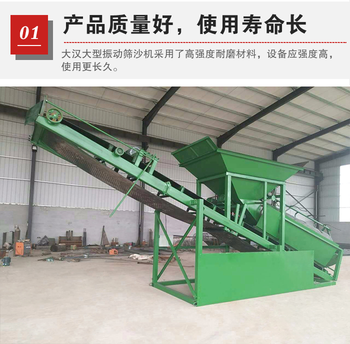 大型振動(dòng)篩沙機(jī)主要用于大型沙石生產(chǎn)線,所以在設(shè)備的耐用性上面會(huì)有要求,大漢大型振動(dòng)篩篩機(jī)為了減低用戶在使用設(shè)備因質(zhì)量等造成停機(jī)等現(xiàn)象,從而影響工作效益,大漢大型振動(dòng)篩沙機(jī)采用了高強(qiáng)度耐磨材料,設(shè)備應(yīng)強(qiáng)度高,使用更長久。