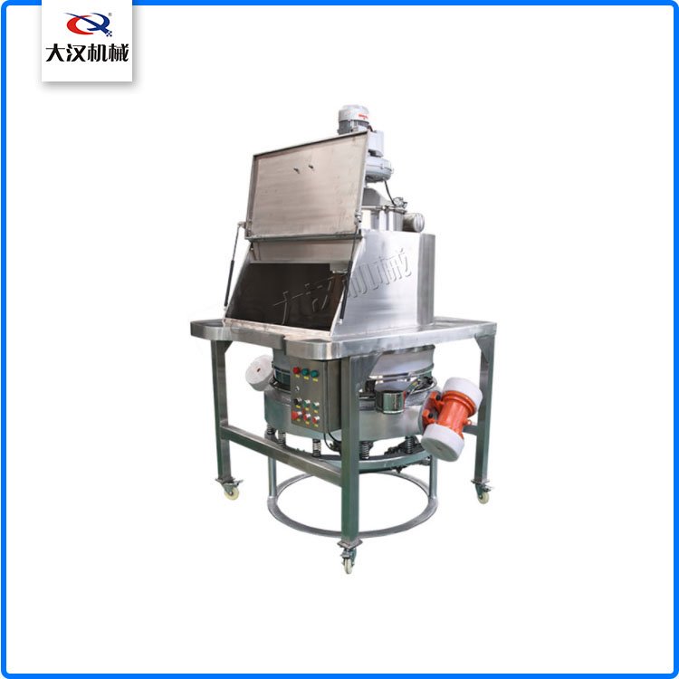 設(shè)置格柵,有效防止PE袋與粉末接觸,并配有振動(dòng)篩(一般是直排篩或旋振篩),可有效攔截異物,確保出料合格。