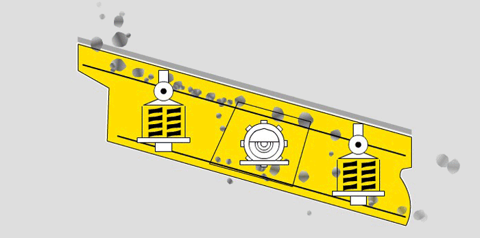 YK圓振動篩分機(jī)工作原理是通過點(diǎn)擊經(jīng)三角帶,使激振器偏心塊產(chǎn)生高轉(zhuǎn)速,當(dāng)運(yùn)轉(zhuǎn)的偏心塊產(chǎn)生很大的離心力,激發(fā)振動篩篩箱產(chǎn)生一定的振幅動作,篩上物料在傾斜的篩面上受篩箱傳給的沖擊力而產(chǎn)生的連續(xù)拋擲動作,讓物料與圓振篩篩面相遇的過程中將小于篩孔的顆粒過篩,實(shí)現(xiàn)篩分作業(yè)。
